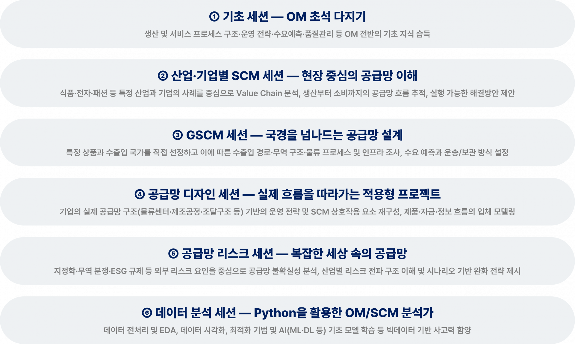 * 학기별 정기 세션의 구성 및 세부사항은 다소 차이가 있을 수 있습니다.